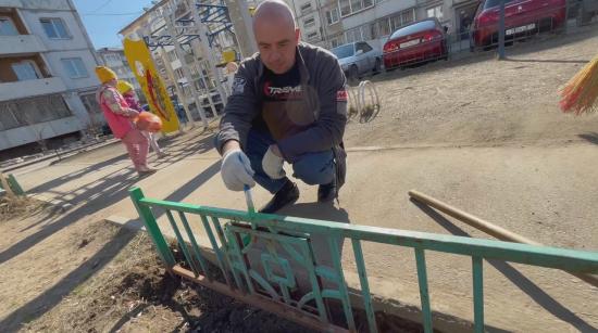 Депутат Законодательного Собрания Иркутской области Александр Качин вместе с муниципальными депутатами Иркутска и села Урик и другими активистами организовал субботник на территории, прилегающей к девятиэтажному жилому дому по улице Трилиссера. Они провели уборку, покрасили и укрепили забор и скамейки, часть из которых отвезли на ремонт.