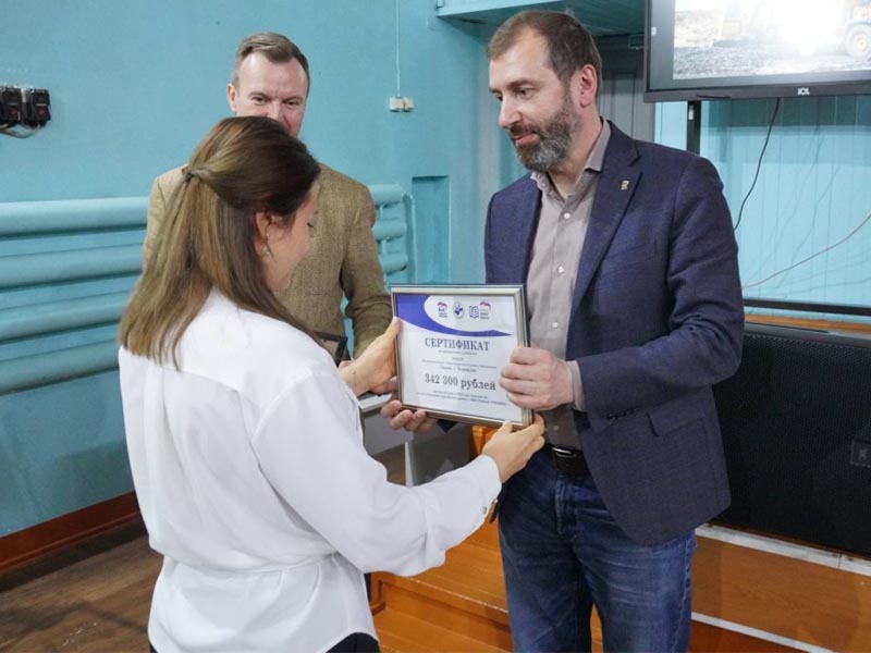 В ходе встречи Александр Ведерников и Виктор Побойкин вручили сертификаты на покупку школьных учебников 11 образовательным организациям города Черемхово, а также сертификаты победителям конкурса инициативных проектов «Есть решение».