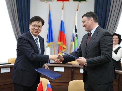 В среду, 17 мая, мэр Иркутска Руслан Болотов встретился с делегацией Маньчжурии во главе с секретарем Городского комитета коммунистической партии Китая Юй Вэйдуном.