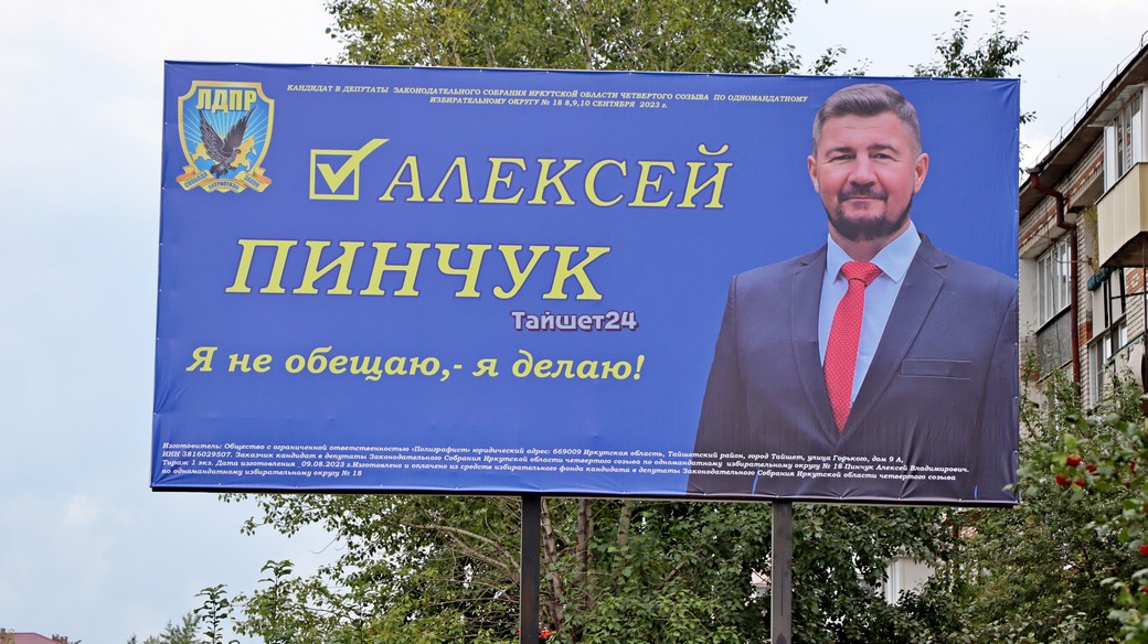 Очередной кандидат в депутаты Законодательного Собрания – Алексей Пинчук из Чуны – по-доброму посмотрел на нас с баннера.