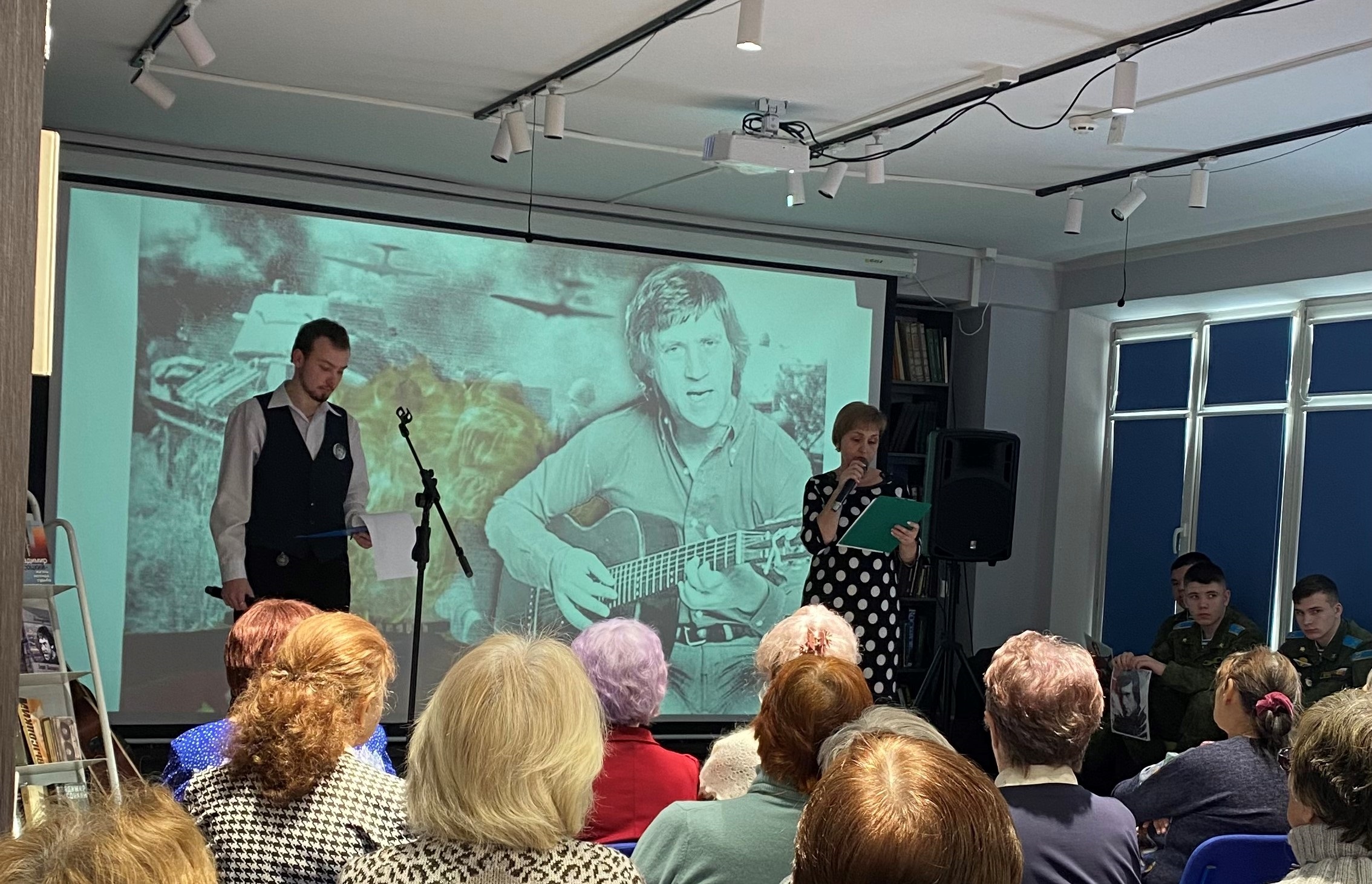 Гостям вечера были показаны отрывки из интервью с В. Высоцким о его песнях на военную тематику.