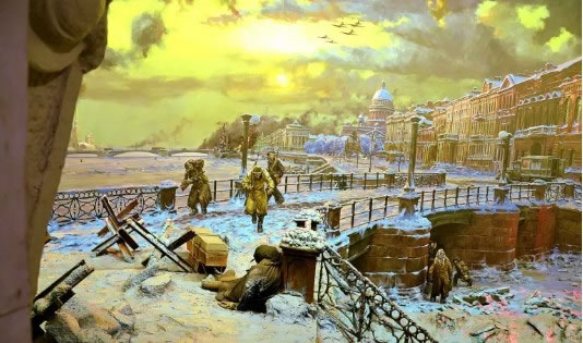 Прорыв блокады Ленинграда Фрагмент диорамы «Прорыв блокады Ленинграда» На фото: репродукция рисунка Б. Дрыжака «За Родину»; Зоя Павловна Булахова, Степан Степанович Белоусов, Сергей Иванович Решетин;