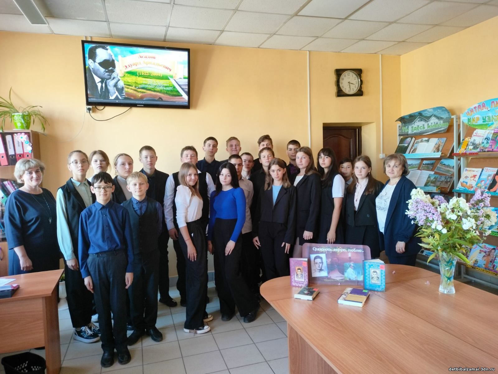 К 100-летию со дня рождения Эдуарда Асадова в Детской библиотеке прошел вечер – портрет «Сражаюсь, верю и люблю» Библиотекари пригласили на мероприятие учащихся 8 «Б» класса МКОУ СОШ №5.