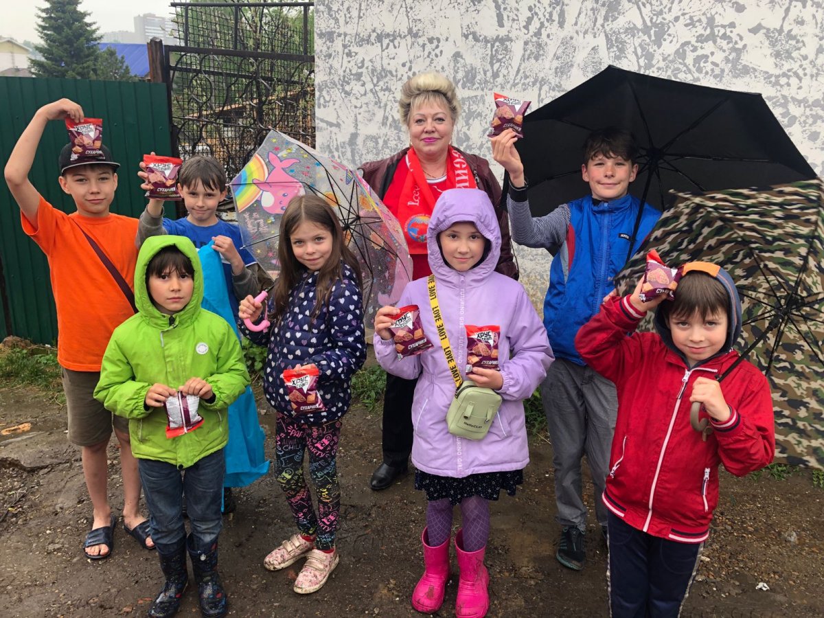 В День защиты детей 1 июня председатель Иркутского городского совета ВЖС - " Надежда России " Татьяна Алексеевна Горносталь поздравила детей из многодетных семей с праздником и вручила им сладкие хрустяшки.