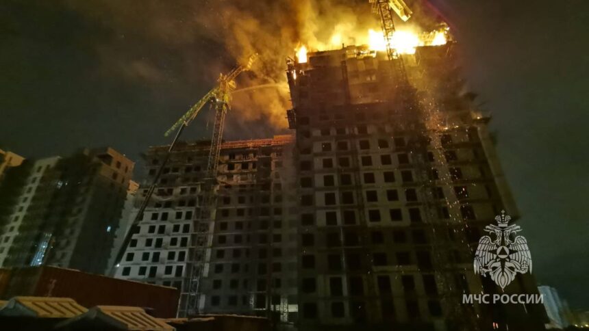 «Из-за постоянной угрозы обрушения строительных конструкций пожарные не могли подняться наверх и приступить к тушению, а для установки специальной высотной техники, которая подает воду наверх, не предусмотрена площадка», — говорится в сообщении.