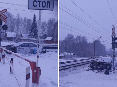 Под Новосибирском грузовой поезд протаранил такси на переезде