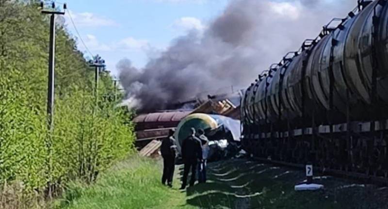 Железнодорожный состав, перевозивший нефтепродукты и пиломатериалы, сошёл с рельсов в Брянской области в результате подрыва полотна.