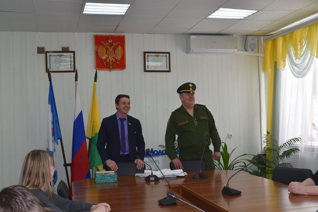 24 марта в Зале заседаний администрации Нижнеилимского района состоялась встреча мэра Нижнеилимского муниципального района Максима Романова и начальника Нижнеилимского отделения ДОСААФ Николая Липатова с курсантами ВУС (военно-учётная специальность) – 837 Профессионального образовательного учреждения «Нижнеилимский спортивно-технический клуб» Регионального отделения ДОСААФ России в Иркутской области и их родителями.