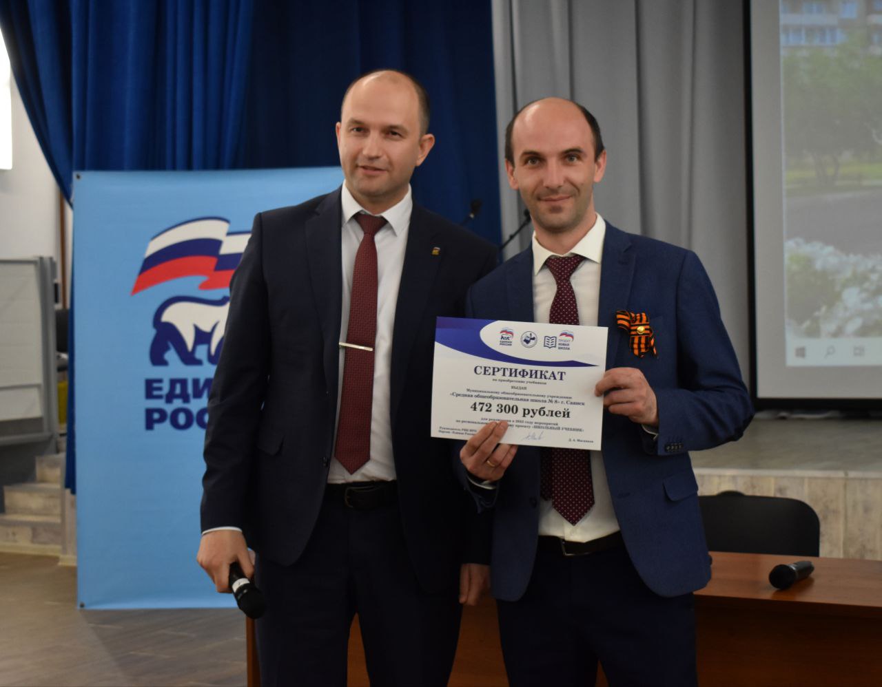 Помимо знакомства с представителями общественности, Дмитрий Мясников вручил партийные билеты овым единороссам, а также сертификаты директорам шести школ города по региональному партийному проекту «Школьный учебник».