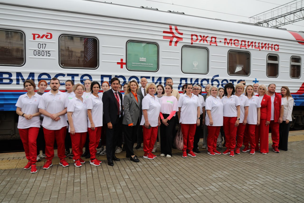 Иркутская область приняла участие в общероссийской информационно-просветительской акции "Вместе против диабета". В её рамках в наш региона прибыл поезд здоровья. В спецвагонах для граждан медики провели бесплатный профилактический осмотр. В общей сложности в Иркутске и Улан-Удэ побывать в поезде здоровья смогли почти 400 человек. Социальную акцию в рамках нацпроекта «Здравоохранение» организовала компания «РЖД-Медицина». Всего поезд побывает в 30 регионах страны. Завершится поездка 14 ноября в Москве во Всемирный день борьбы с диабетом.