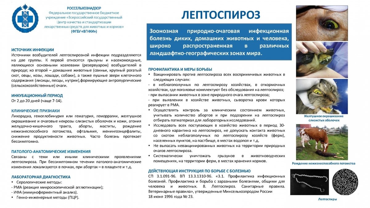 Управление Федеральной службы по ветеринарному и фитосанитарному надзору по Иркутской области и Республике Бурятия (далее – Управление) сообщает, что с конца прошлого года на территории Российской Федерации регистрировались случаи возникновения лептоспироза. Так лептоспироз крупного рогатого скота регистрировался на территории Республике Алтай, лептоспироз лошадей на территории Самарской области.