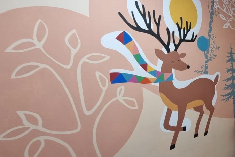 На стенах одного из корпусов отделения медицинской реабилитации для пациентов с соматическими заболеваниями Ивано-Матренинской детской клинической больницы появилась новая роспись. Волонтеры изобразили там лесных зверей и птиц .