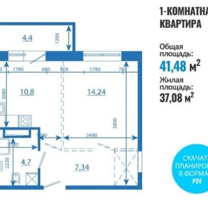 - Общая площадь: 42 м²