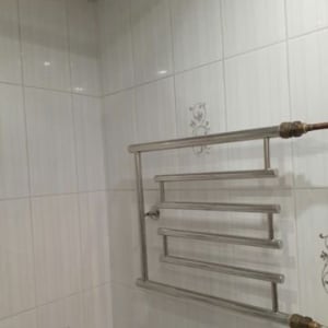 Сан/узел совмещенный – 3 кв.м. Отделан кафелем приятной расцветки, установлен хромированный полотенце-сушитель.