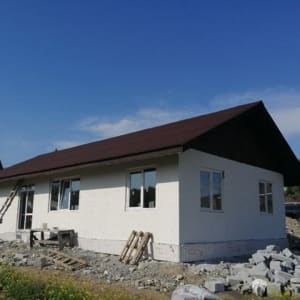 Основание дома монолитная плита. Стены из Байкальского автоклавного газобетона. Кровля мягкая. Фасад оштукатурен.