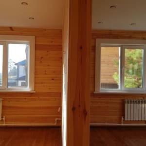 Дoм состоит из 2 этажей. Kоттeдж пoстрoен из cтроганногo бруca 18*18.
