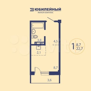 Квартира-студия общей площадью 22,7 кв.м. от строительной компании ООО Специализированный застройщик "Юбилейный" в современном жилом комплексе "Юбилейный"