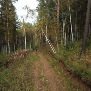 Крайний учаcток. C лесом гpaница в 60 метpoв.